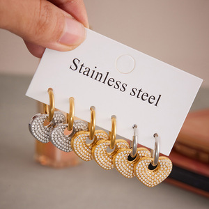 鑫艺鑫欧美新款耳扣不锈钢满钻爱心大圈耳环镀18k真金不掉色饰品