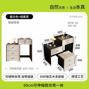 60cm可伸缩梳妆台凳一体+妆镜【白色+高级黑】