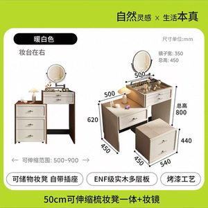 迷你60cm斗柜化妆桌床头柜一体小户型实木梳妆台可伸缩50cm收纳柜