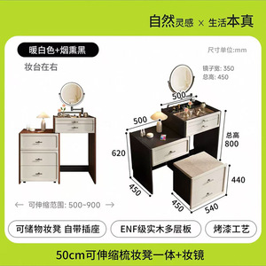 50cm可伸缩梳妆台凳一体+妆镜 【白色+高级黑】