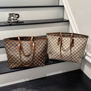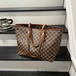2025秋季新款大容量质感印花复古韩版休闲通勤时尚单肩手提托特包