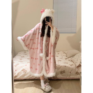 甜美可爱HelloKitty睡衣女冬季新款睡裙加绒加厚可外穿家居服睡袍