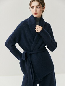 新款100%纯山羊绒开衫女浴袍式针织外套修身系带短款秋冬显瘦毛衣