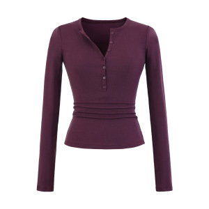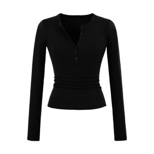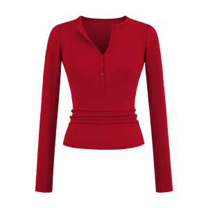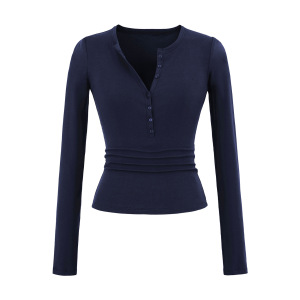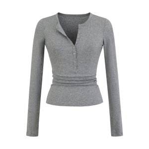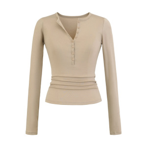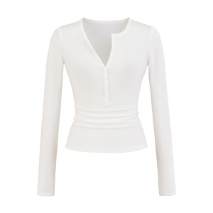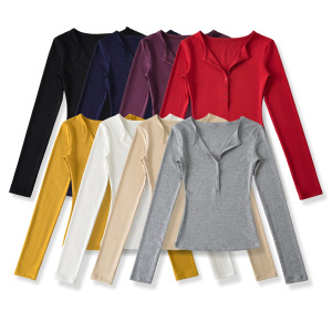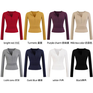 美式复古天丝V领半开襟长袖上衣女休闲修身显瘦打底衫T恤秋季新款