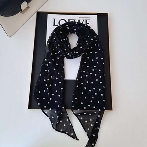 韩系棕色波点系脖丝巾高级感女跨境新款丝带脖饰飘带领巾搭配长条