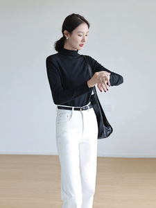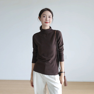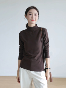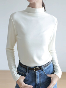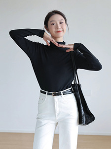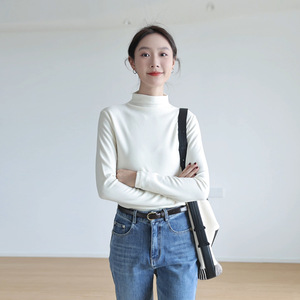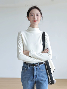 羊绒蛋白羊毛后中缝半高领长袖女秋冬内叠修身暖感中领德绒打底衫