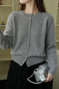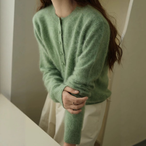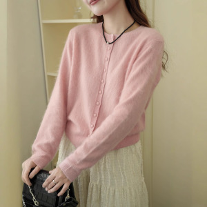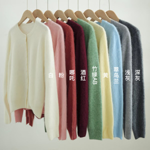 软糯减龄拉绒开衫包扣羊绒羊毛拉毛外套圆领宽松毛衣女秋冬百搭