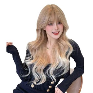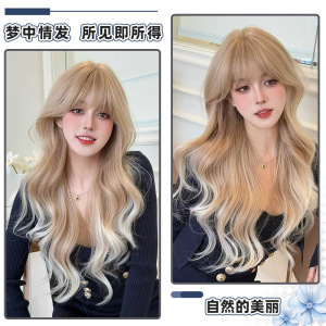 千鸟假发女全头套芭比渐变金长卷发夏季薄款精修大波浪日常假发套