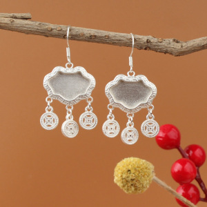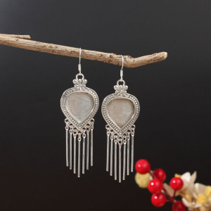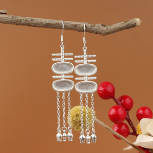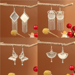 少数民族风手工苗银diy耳环配件底托空托镶修片多款流苏耳饰批发