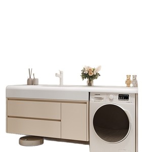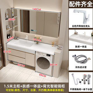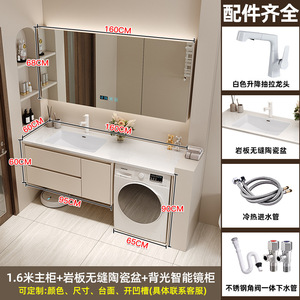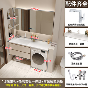 可订洗衣机洗手盆一体柜岩板热弯陶瓷无缝一体盆浴室柜洗漱台组合