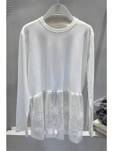 中长款叠穿白色拼接蕾丝T恤春秋冬新款花边长袖内搭打底上衣百搭