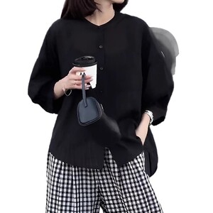 法式薄款黑色七分袖女胖MM高级感气质通勤显瘦宽松巨好看休闲上衣