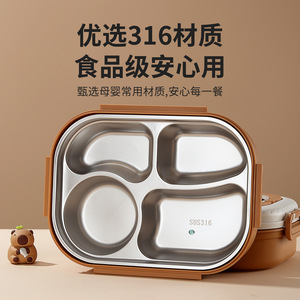 可爱豚豚316不锈钢保温饭盒儿童学生专用打饭分格提手微波便当盒