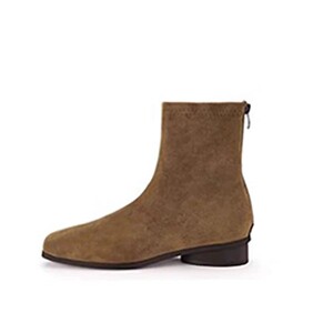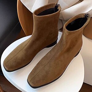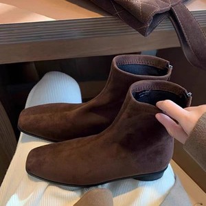 绒面韩版方头低跟瘦瘦靴2025年秋韩版裸靴后拉链马丁靴短靴鞋女