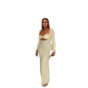欧美跨境女装2025秋季新款纯色长袖裹胸紧身气质长款一步连衣裙