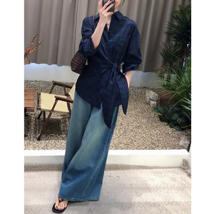 蓝色格纹收腰衬衫女高级感轻奢减龄洋气又a又飒冷淡系设计感上衣