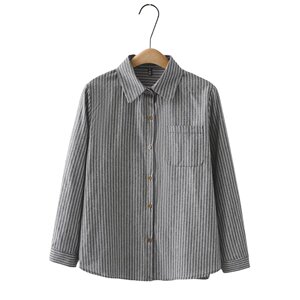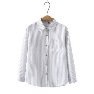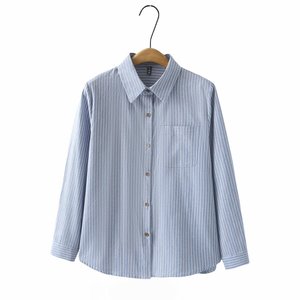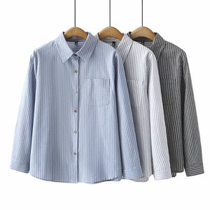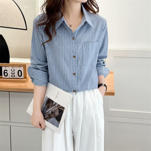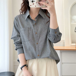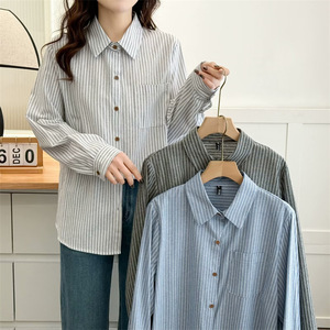 2025春大码棉衫长袖衬衣女胖妹休闲开衫上衣条纹衫百搭衬衫2510
