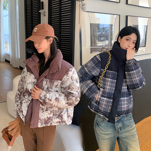 外贸2025秋冬新款欧美豹纹色棉服外套女加厚短款连帽夹克羽绒棉衣