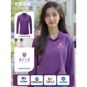 清华大学紫色polo秋季长袖工作服t恤定制logo校庆活动学校文化