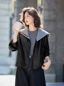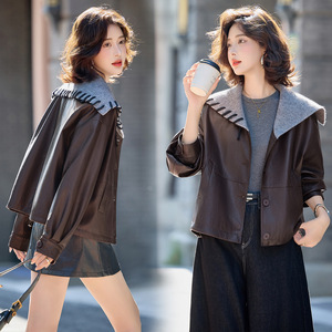 短款休闲配针织披肩宽松皮外套女2025秋季新款长袖女式皮衣ZH2633