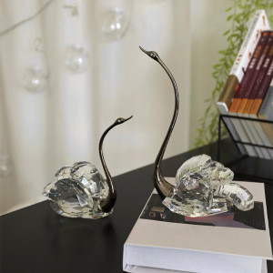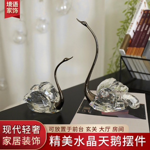 跨境轻奢水晶天鹅客厅电视柜工艺品摆件结婚礼物酒柜玄关柜装饰品