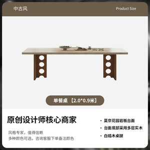 中古风实木莫奈花园岩板餐桌椅组合家用小户型极简长方形下挂餐桌
