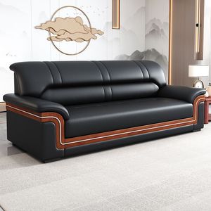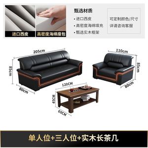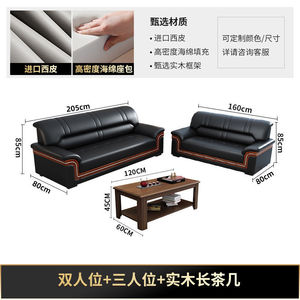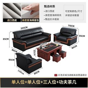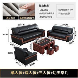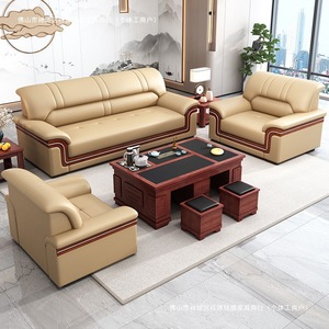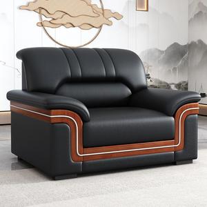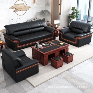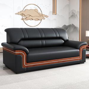 办公沙发商务简约现代新中式接待室会客办公室真皮沙发茶几组合