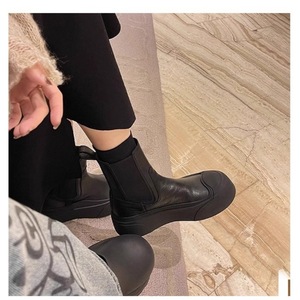 现货~内增高6cm真皮厚底切尔西靴女2025秋黑色短靴百搭圆头马丁靴