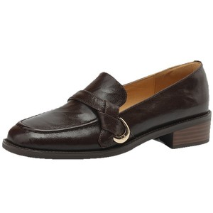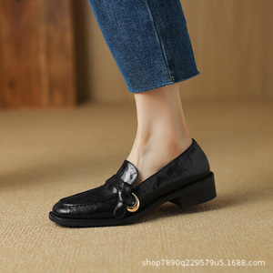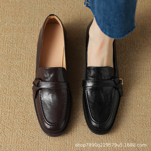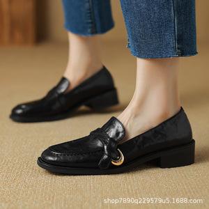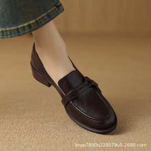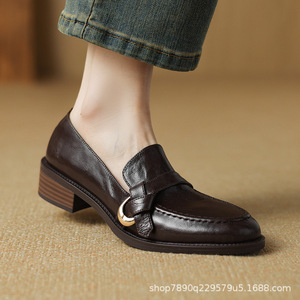 2025新款粗跟软羊皮通勤中跟懒人小皮鞋乐福鞋女新款真皮浅口单鞋