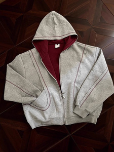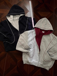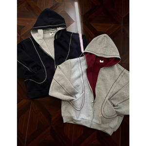 国潮牌美式高街拼接明线连帽卫衣春秋宽松设计感小众开衫拉链外套