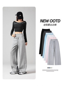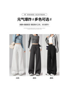 美式复古休闲运动裤女秋季2025新款小个子抽绳慵懒垂感阔腿裤