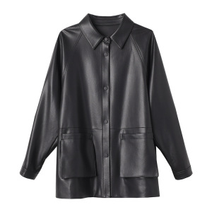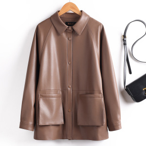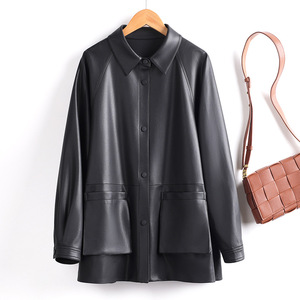 2025春秋新款爆款海宁皮衣女款修身显瘦机车大码中长款皮上衣外套