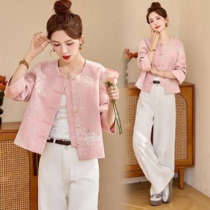 小个子妈妈秋装外套洋气短款中老年女装新款上衣春秋贵夫人夹克女