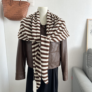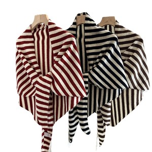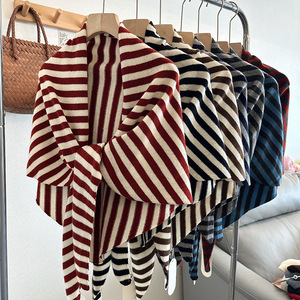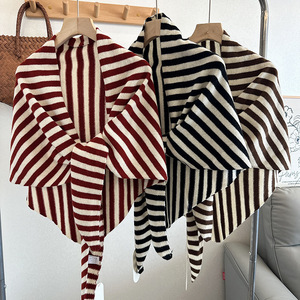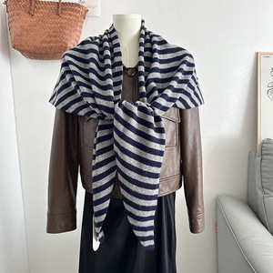 加大版全羊毛条纹针织三角巾女出口日韩100%羊毛洋气护颈保暖披肩