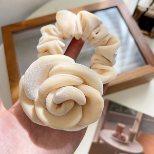 2025新品巴黎同款气质丝绒玫瑰花朵网红麦吉马尾圈发饰头饰发圈