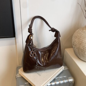 简约高级斜挎包时尚复古小众ins百搭通勤油蜡皮大容量单肩腋下包
