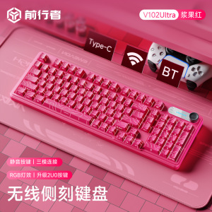 前行者V102浆果红侧刻机械手感键盘三模游戏办公高颜值静音女生