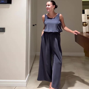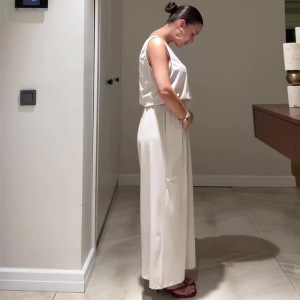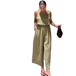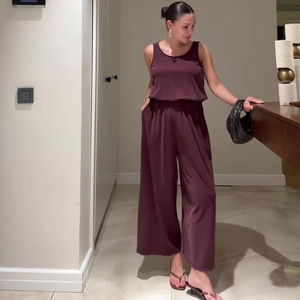 2025年夏季新款欧美亚马逊跨境外贸女装休闲宽松肩带无袖舒适套装
