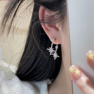 爆款微镶锆石芒星耳钉一款两戴耳环女轻奢高级感气质名媛银针耳饰