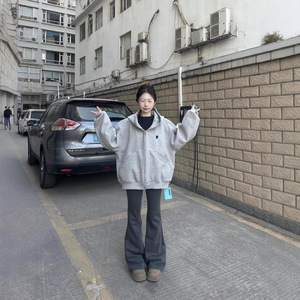 早秋韩系灰色连帽卫衣外套女秋季2025新款小个子宽松oversize上衣