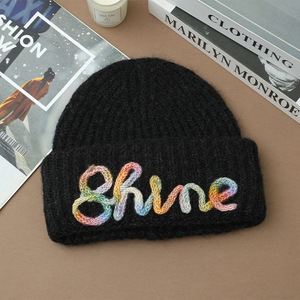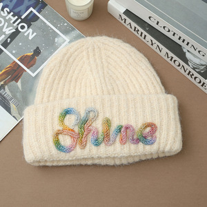 帽子女秋冬季彩色线条保暖针织帽韩版百搭大头围套头帽户外防寒帽