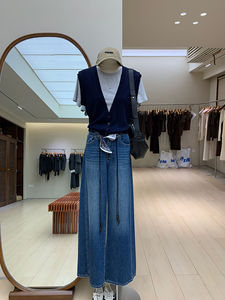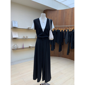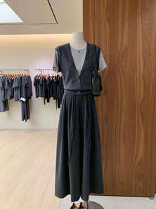时髦小众撞色拼接马甲假两件女减龄叠穿层次感短袖针织衫短款修身