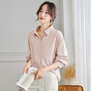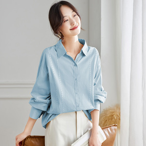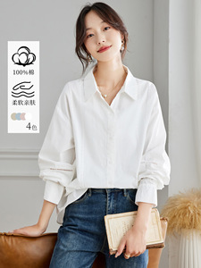 棉茧 翻领白衬衫女长袖2025秋装新款宽松休闲上衣设计感纯棉衬衣