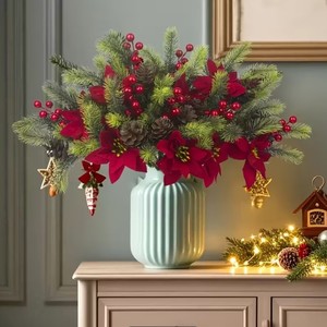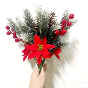 亚马逊圣诞花束仿真松针装饰红浆果松针插花家居节日氛围装饰假花