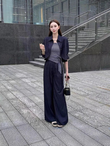 2025秋新款时尚百搭套装韩系气质松弛感格子背心外套阔腿裤三件套