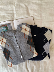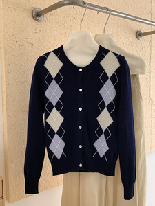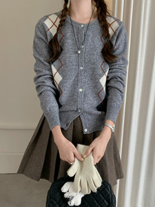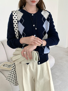 学院风风100羊毛开衫女圆领简约休闲针织外套宽松长袖百搭毛衣女