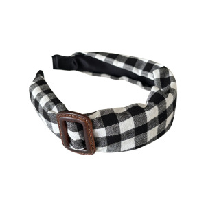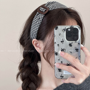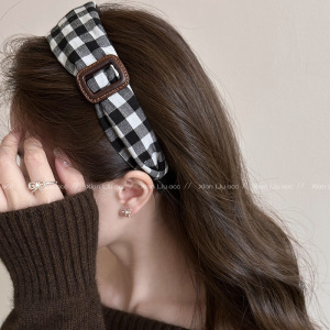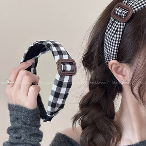 日常外戴格纹扣子发箍女复古风时尚黑白格百搭发卡洗脸压发头箍