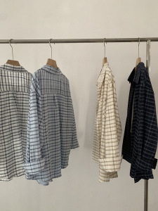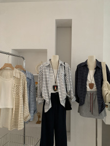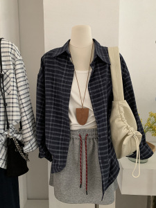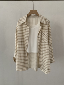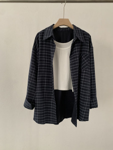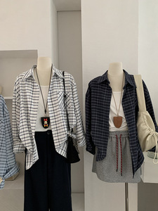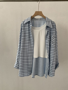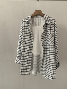 欧玛莱 翻领单排扣长袖中长款衬衫+白色背心两件套上衣早秋女4613