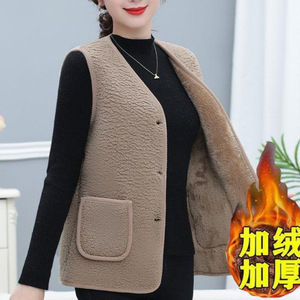 加绒加厚女士百搭皮毛一体羊羔绒马甲坎肩保暖洋气中老年毛马