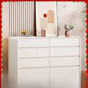 奶油风实木整装八斗柜卧室轻奢现代斗柜大容量收纳皮革客厅储物柜